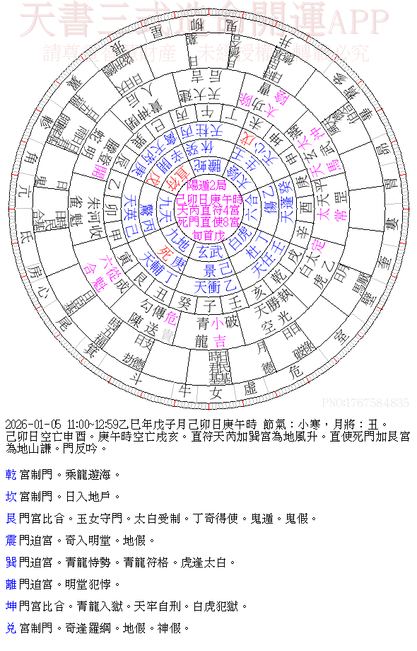 您所使用的「天書三式造命開運APP」目前的授權為推廣版,提供太乙神數、奇門遁甲、大六壬當下的圓盤,以及協紀辨方本命吉神、造命大八字等相關命理資訊。